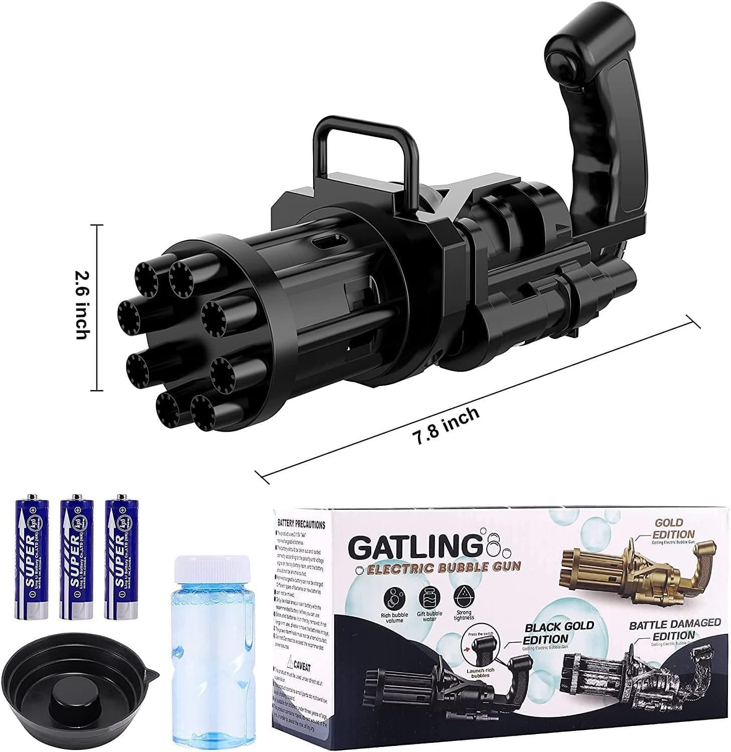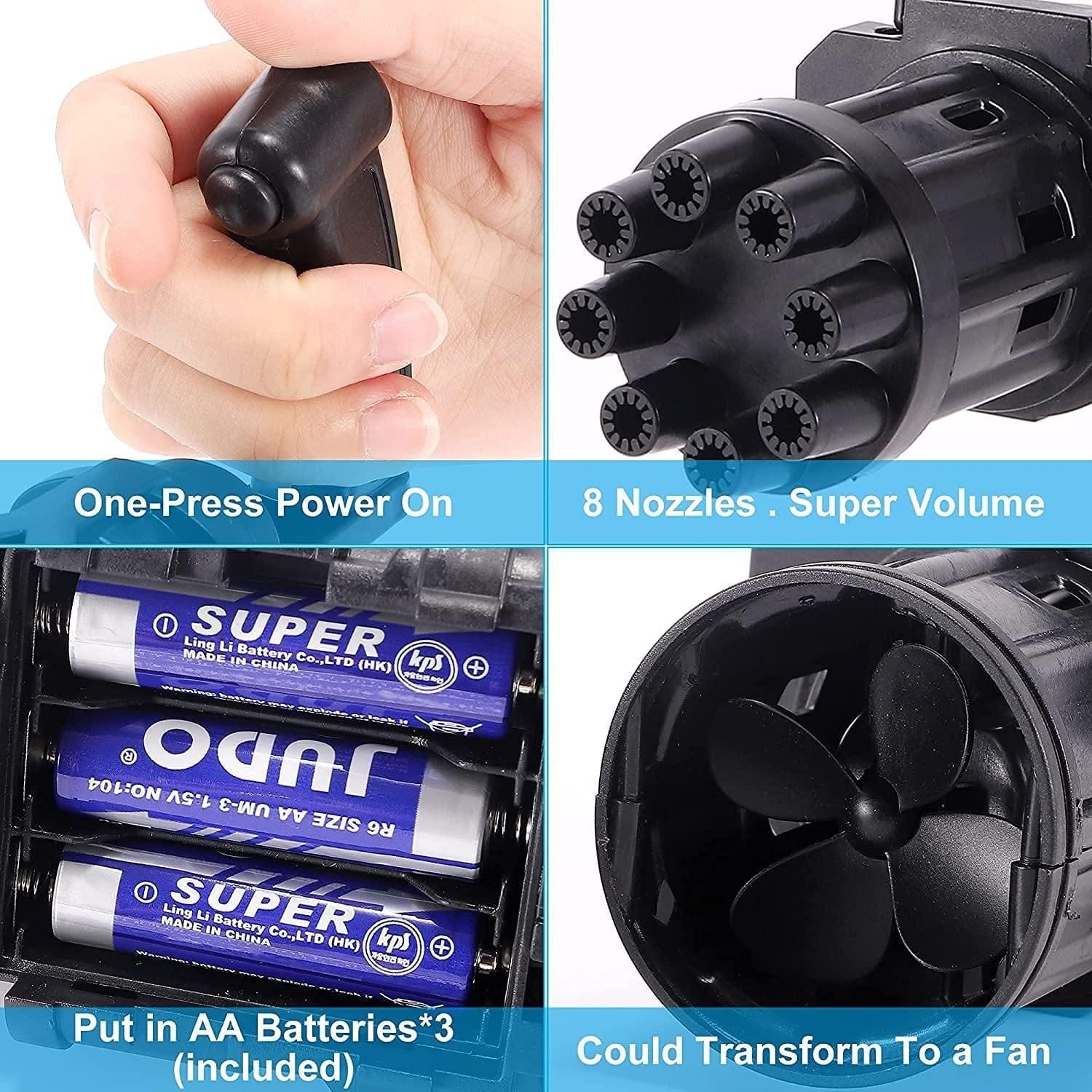 Product Name: Bubble Gun- 8 Hole Automatic Gatling Bubble Gun Blower Maker, with 3 Batteries and Bubble Water(Assorted Color) Package Contains: Product Description: Adopting Gatling's appearance structure, 8 bubble holes, hundreds of colorful bubbles can be blown out every minute Package Contain: It has 1 Piece of Bubble Gun Material: Plastic Dimensions: 7.8 x 2.6 inch Features: Easy to Use and Intall: The electric bubble machine is easy to install and use, and uses 4 AA batteries. Pour the bubble water into the dish, dip the bubble gun in the bubble water, and press the switch to enjoy the bubble time. Material: Plastic Color: Colour as per availability Combo/Set Of: Pack of 1 Additional Information: NOTE: -Color & Design As per stock availability -Please allow 1-3 cm error due to manual measurement. please make sure you do not mind before you bid. -The colors may be Slightly different due to difference in Mobile disply. Weight: 300